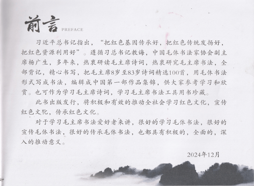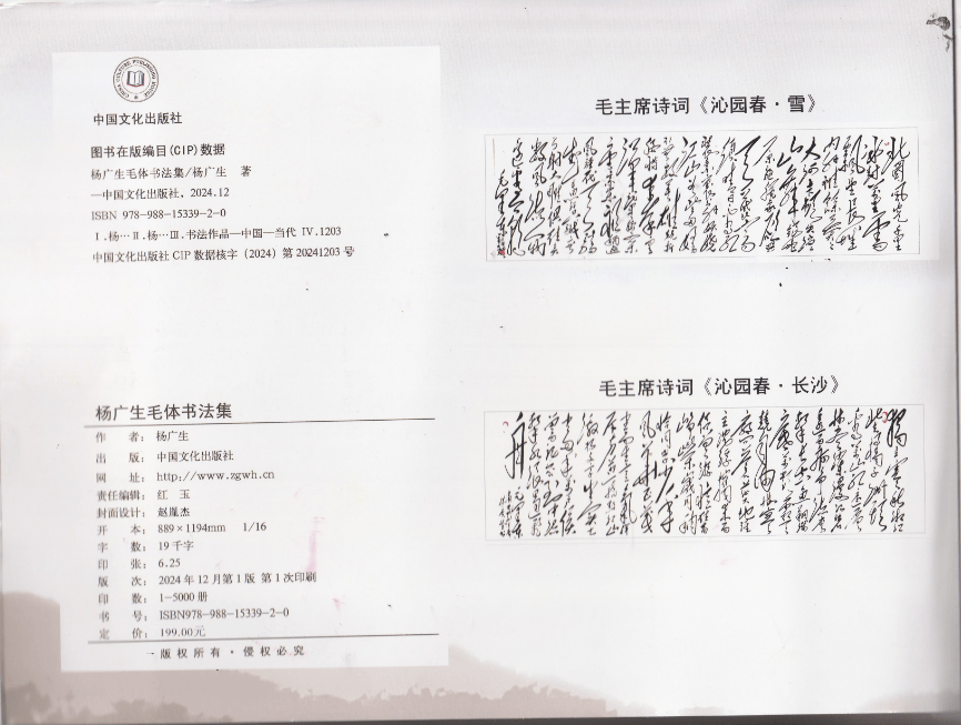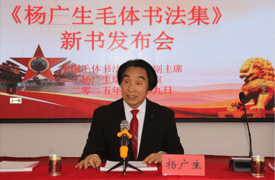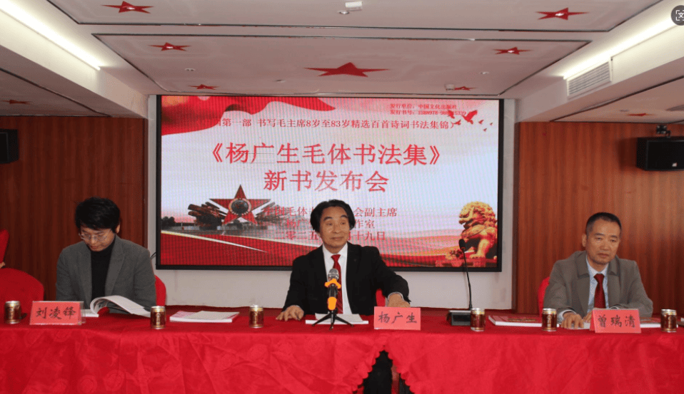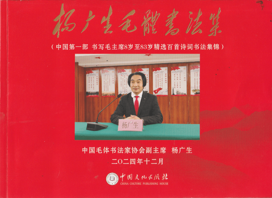 《杨广生毛体书法集》由中国文化出版社出版,在新华书店有售。发布会上,杨广生介绍新书的内容,回答读者提问,举行签售活动。多年来,杨广生热衷研读毛泽东诗词和书法,全部背记,精心书写,精选毛泽东8岁至83岁诗词百首,以毛体书法风格书写,编辑成中国第一部此类作品集锦,供爱好者参考学习和欣赏,也可作为学习毛泽东诗词和书法工具用书珍藏。