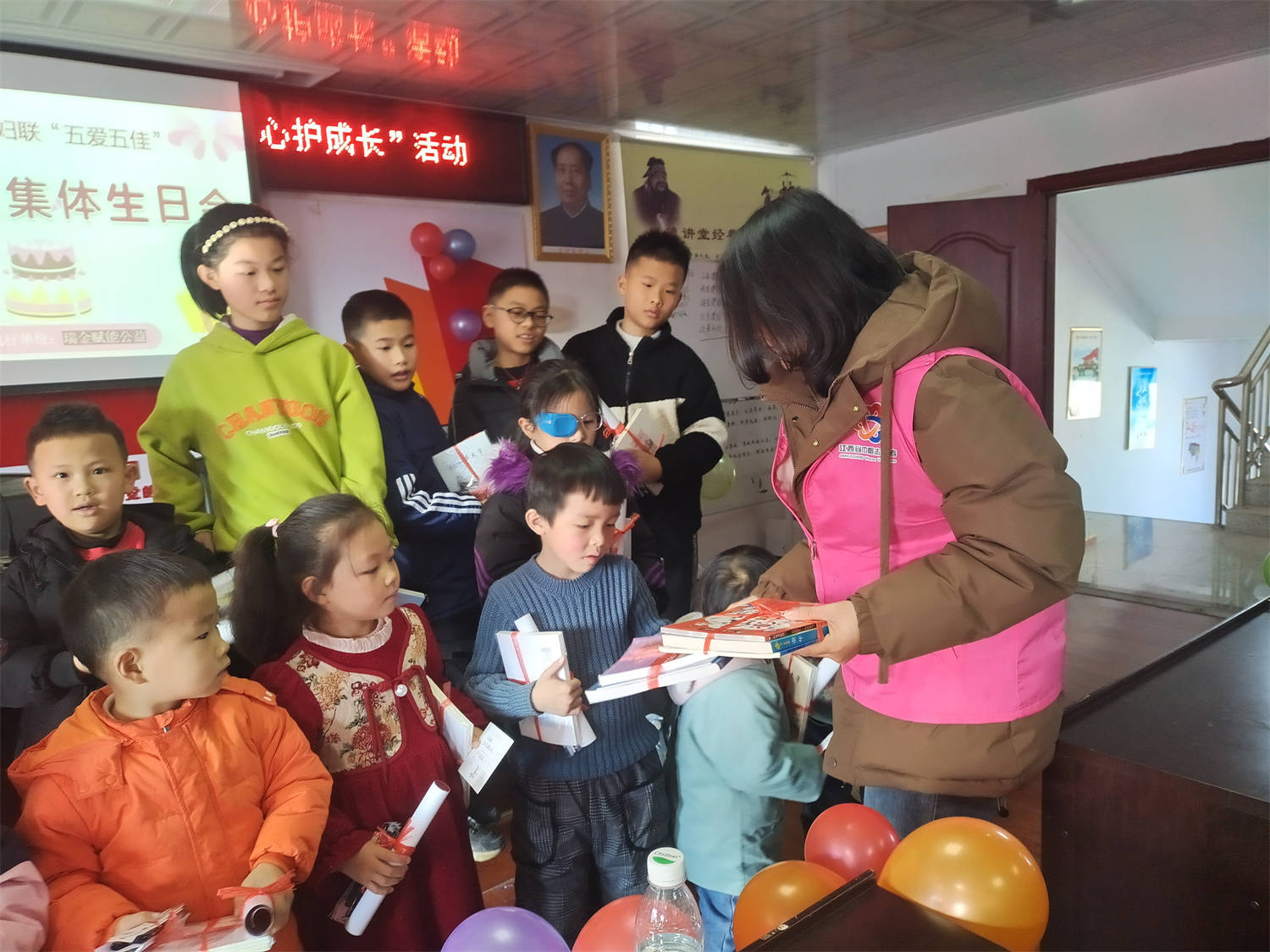 吃完蛋糕,志愿者们小心翼翼地将精心准备的学习用品一一递给孩子们。孩子们接过学习用品,眼中闪烁着感激的光芒,他们轻声说着“谢谢”,声音虽小却充满了力量。这些学习用品不仅是对孩子们的鼓励,更是对他们未来的期许,希望他们能在知识的海洋里遨游,追逐自己的梦想。