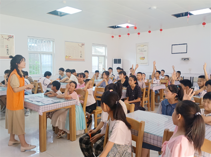 社工姐姐邀请小朋友们举手回答问题,说说自己对水源利弊的认识,小朋友们踊跃举手,都想说一下自己的看法。