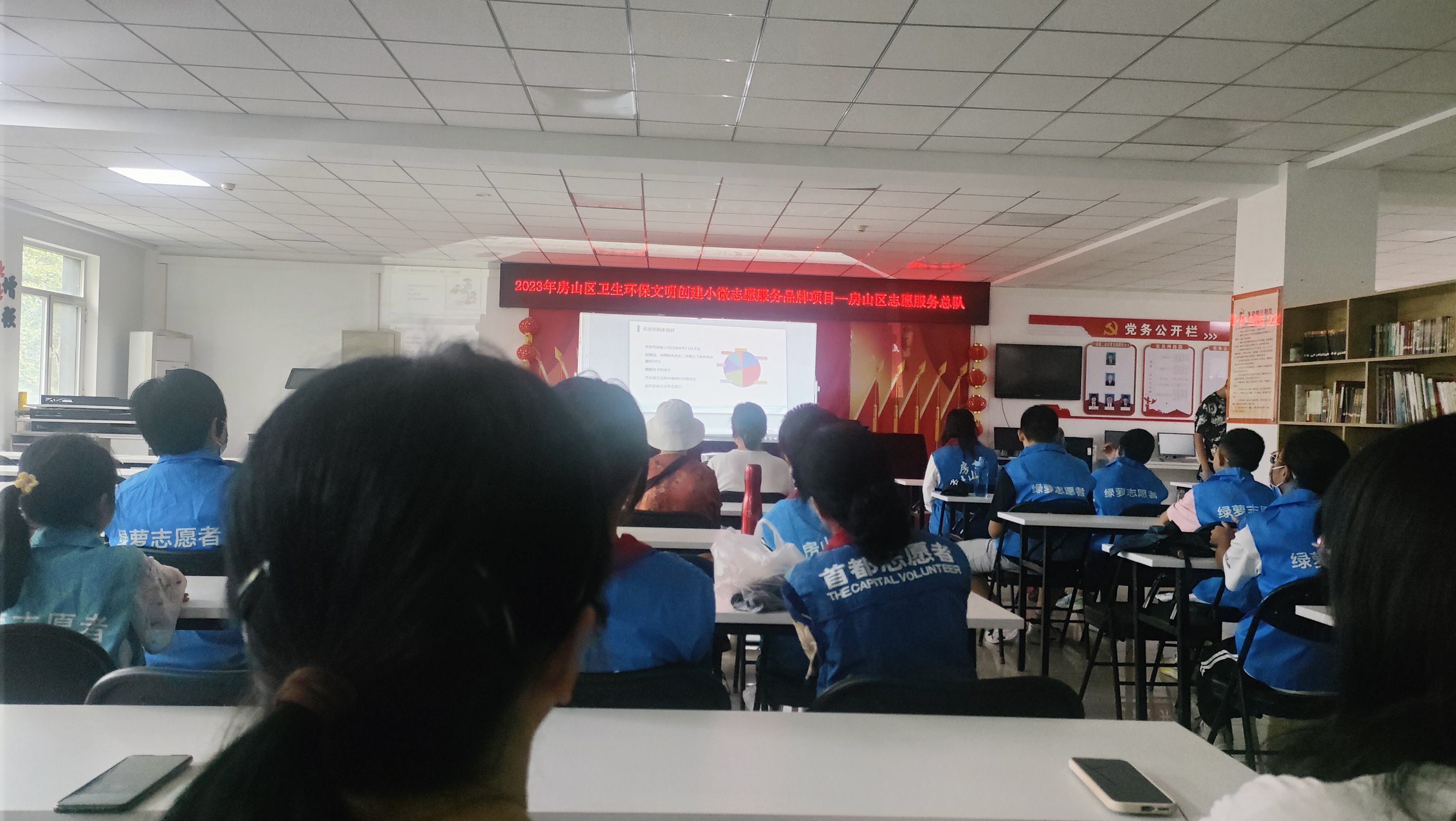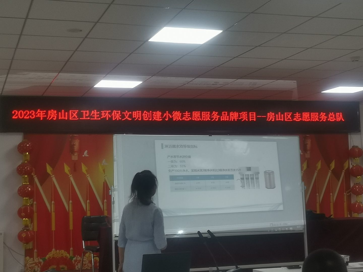 为增强全社会水资源节约保护意识,践行公民节水行为规范,推进水资源节约利用,助力房山生态保护,2023年7月13日上午,绿萝志愿服务队在良乡一街二区,开展“2023年房山区卫生环保文明创建小微志愿服务品牌项目”,携手房山水务局进行《家庭节水讲座》志愿宣传活动。