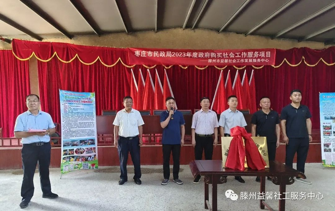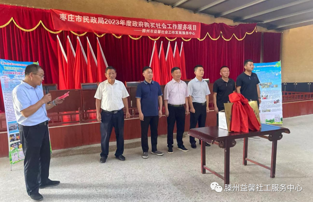 7月16日,枣庄市民政局2023年度政府购买社会工作服务项目,滕州市益馨社会工作发展服务中心在龙阳镇冯庄村举办社会工作室揭牌仪式。龙阳镇副镇长蒋敬冉、市民政局基层政权和社会组织管理科科长肖桂营、市民政局社会福利中心、未成年人保护中心主任李庆文 、龙阳镇民政科科长侯程、冯庄办事处郝主任、冯庄村党支部关书记、益馨社工党支部书记、理事长时均忠、以及益馨社工、妇联、志愿者等参加揭牌仪式。仪式由益馨社工理事长时均忠主持。