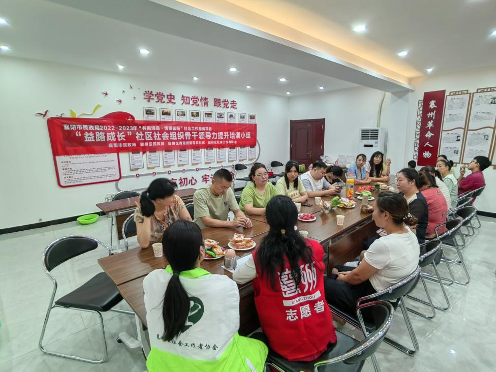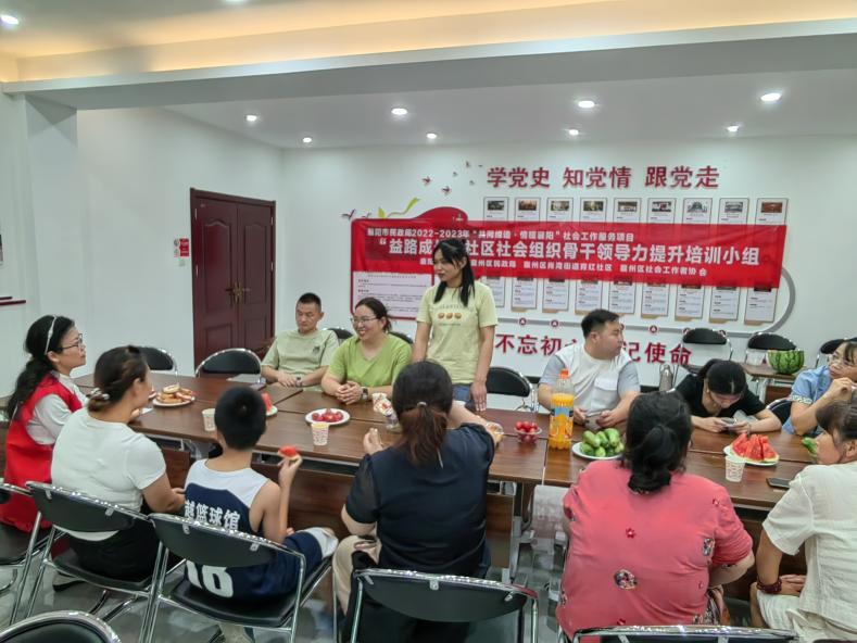 为大力推进育红社区“共同缔造”工作打下坚实基础,推进“五社联动”机制实施,结合2023年襄阳市民政局“共同缔造 情暖襄阳”社会工作服务项目,在襄阳市民政局、襄州区民政局支持下,襄州区社工协会根据辖区实际和社区需求,于7月16日开展了“益路成长”育红社区社会组织骨干领导力提升小组第一节活动,主要由介绍小组活动、实务培训、经验分享、分组讨论等组成。