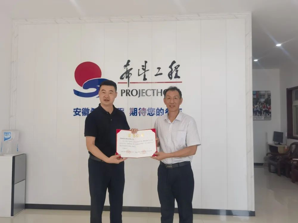 李永军向安徽临水酒业有限公司回赠捐赠证书和纪念水晶牌,以感谢爱心企业对安徽希望工程事业的支持。