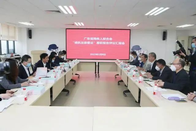 2023年2月8日,广东省国家机关“谁执法谁普法”履职报告评议团实地考察省残联普法工作。