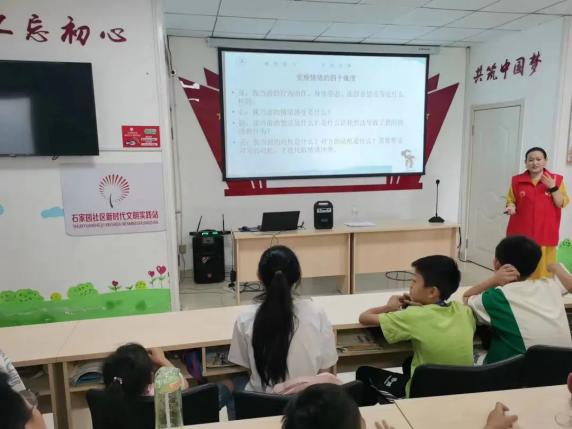 青少年在学习和生活中总是会遇到一些挫折,而青少年时期又恰恰是遭遇身体、心理、情绪和社会关系前所未有的变化时期。为让辖区青少年正确认识自己的情绪,学会调节和控制情绪的方法,2023年7月18日,运河街道未保站携手新领航社工在石家园社区开展“关爱自己 做情绪的掌舵手”心理健康主题宣讲活动。