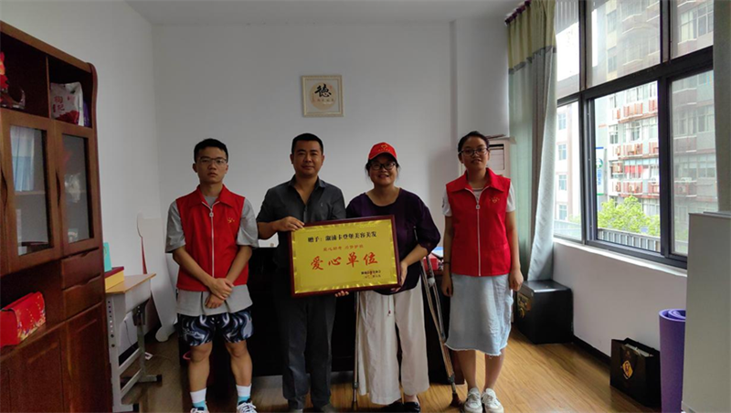 活动中,志愿者来到溆浦卡登堡美容美发、江苏洋河酒厂股份有限公司、怀化市第五机动车驾驶员培训学校、溆浦晨洲商贸四家爱心企业,为他们颁发牌匾,授予“爱心单位”称号,表彰爱心企业大爱无疆、无私奉献的爱心善举。
