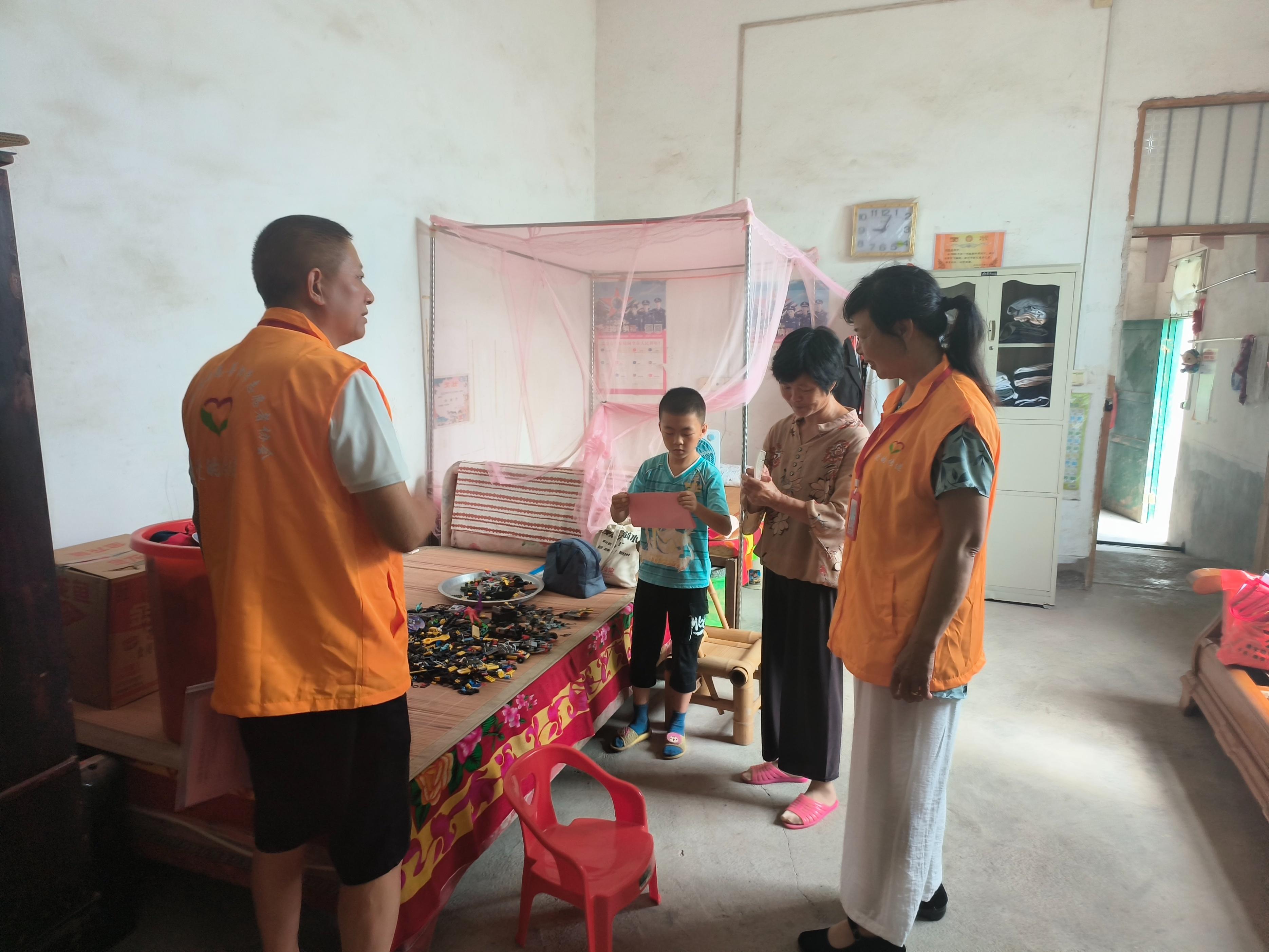 7月7日,瑞金赋能公益志愿者刘峰、刘慧英、杨美珍等前往云石山乡陂下村走访看望农村低保户,为困境家庭小成同学送去宜兴市新庄小学捐赠的学习书籍等,在此感谢江苏省宜兴市阳光家园义工社的关怀和爱心人士的关心,并釆集完善"爱的传递"资料信息,争取给他更多的帮助。