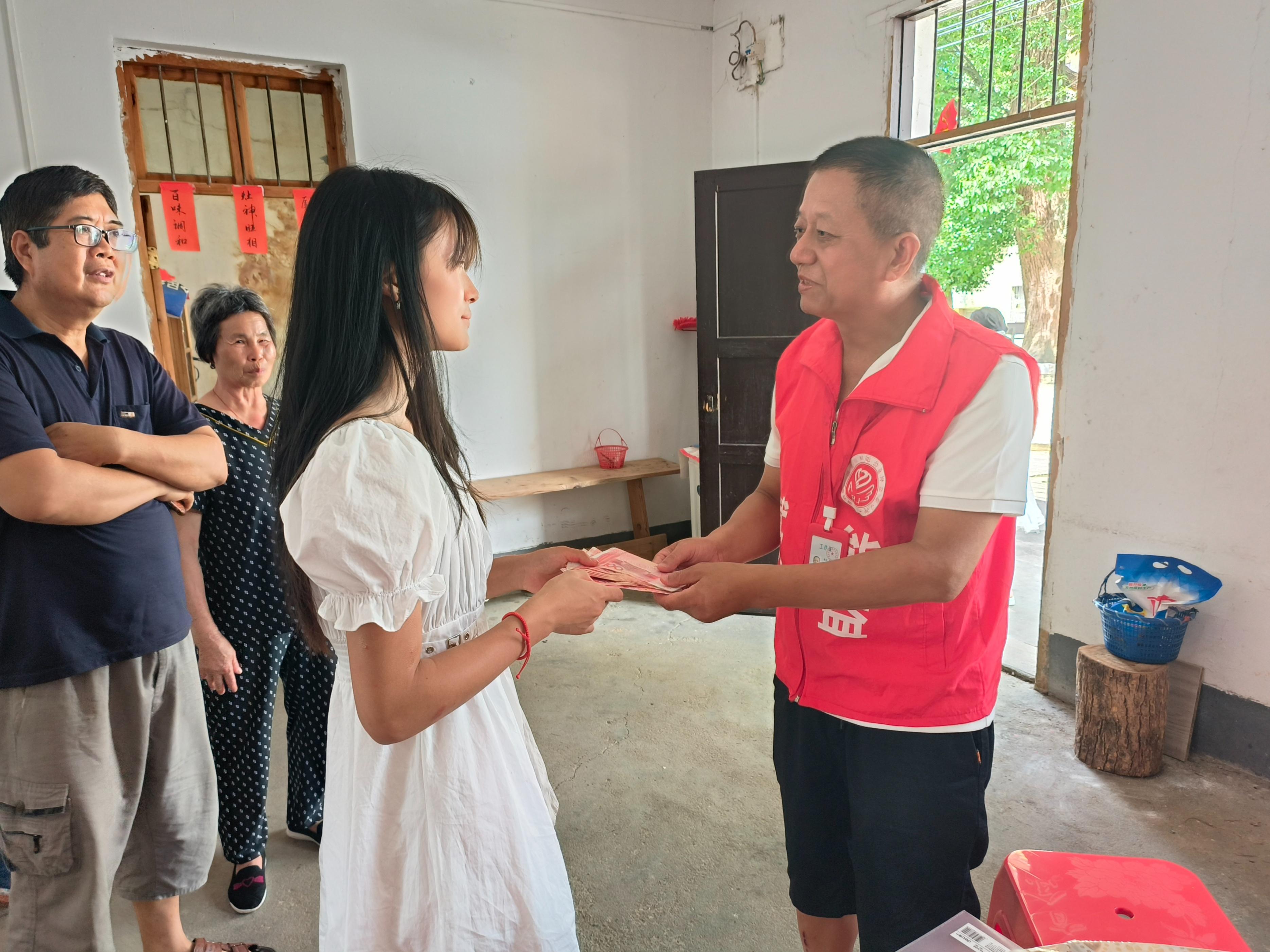 倏忽温风至,因循小暑来。7月7日小暑,瑞金市赋能公益志愿者刘峰、刘慧英、杨美珍等前往云石山乡田心村小有家,向大学生梁小有转交了广东省爱心人士苏盛樵先生的善款1000元。